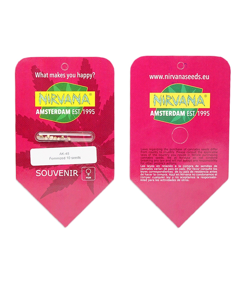 Семена конопли AK 48 fem от Nirvana. Пожалуй, самая сильная и скороспелая версия АК. Всего за 49-63 дня приносит 400-500 г/м² в индоре. Уровень ТГК 14-16%.