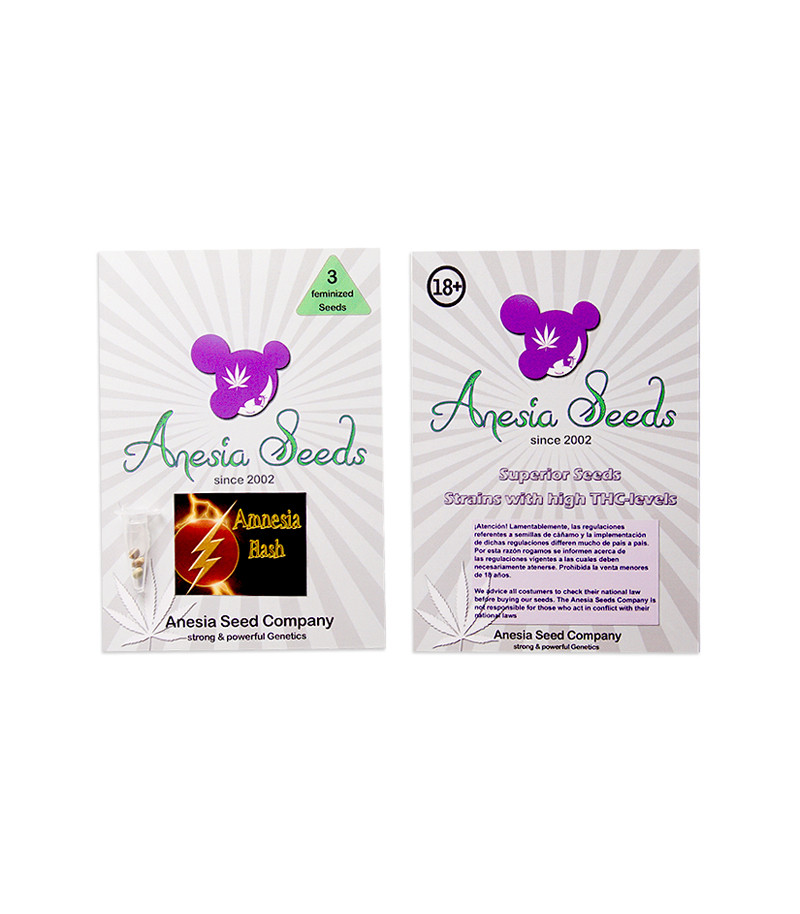 Сорт конопли Amnesia Flash – это предельно мощный (27% ТГК) и очень урожайный фотик, который подходит для выращивания в индоре и ауте. Быстро созревает и не требует специального ухода. В закрытом помещении требует всего 65 дней цветения, а на улице приносит целый килограмм первоклассных шишек.