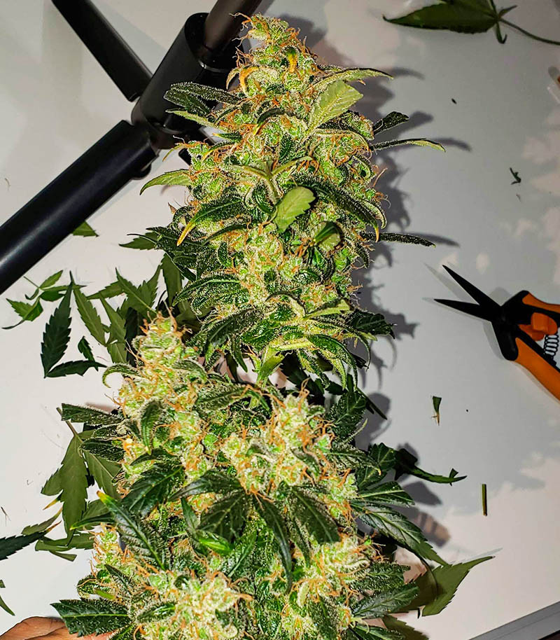 На первый взгляд растения сорта конопли Auto Pineapple Glue не похожи на типичные автоцветы. При культивации в индоре их высота составляет не более 100 сантиметров, а выращивание в открытом грунте позволяет вырастить «ёлочки» в два раза выше.
