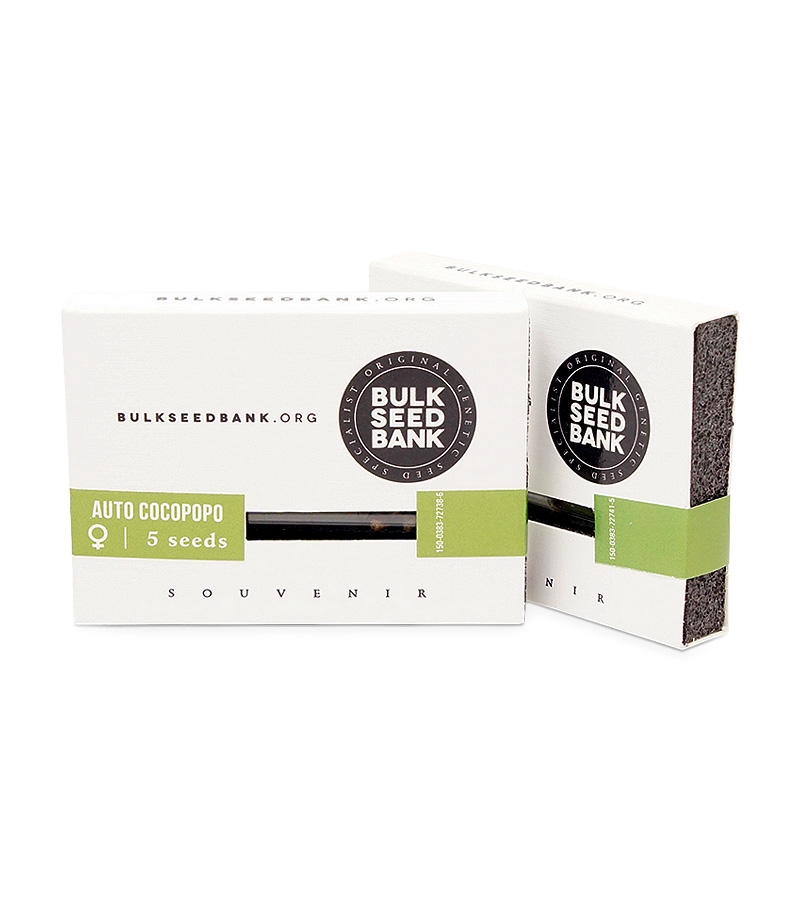 Сорт конопли Auto Cocopopo от Bulk Seed Bank состоит из сативы, индики и рудералиса. В гровинге неприхотлив, имеет малоеколичество листьев, пушистую центральную колу, темно-зеленый окрас во время цветения. Каннабис обладает сладко-горьким вкусом, используется как седативное средство.