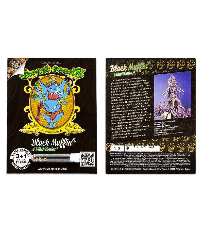 Фотопериодный сорт Black Muffin F1 Fast Version – это настоящая жемчужина в богатой коллекции сидбанка Sweet Seeds. Своим необычным видом он способен растопить даже ледяное сердце Снежной королевы, при этом каких-то углубленных знаний в ходе выращивания растение не требует.