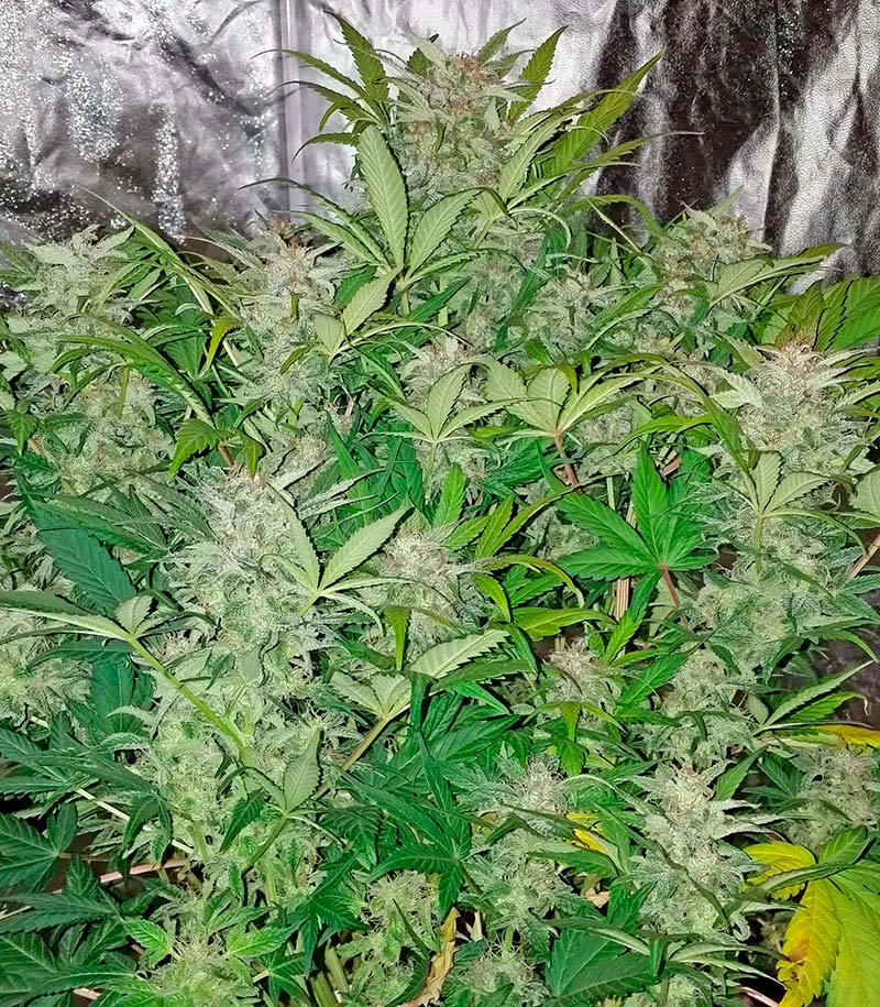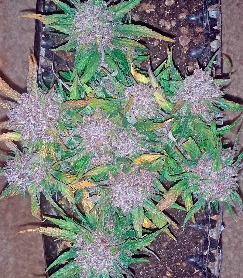 Семена конопли Blue Dream Auto показывают приличную для автика урожайность как в помещении или закрытой теплице, так и – под открытым небом в умеренном, сухом и средиземноморском климате. Цветение начинается автоматически, независимо от продолжительности светового дня и длится в течение 70-75 дней. На последних стадиях листья растишек приобретают красивые голубоватые и пурпурные оттенки, радуя гроверов-эстетов своим эффектным внешним видом. Семена марихуаны Blue Dream Auto вырастают в кусты до 150 см в ауте и около 100 см в индоре. Растишки имеют очень густые побеги с короткими междоузлиями и многочисленными выразительными плотными бутонами, покрытыми густой смолой.