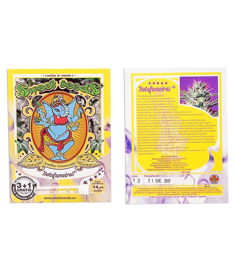 Сорт Botafumeiros – потомок элитного азиатского Haze с экстравагантным вкусом и сбалансированным действием. В аутдоре вымахивает до трех метров, приносит 400-800г с куста, не боится ни плесени, ни холодных ночей. Вызывает необычайную ясность мыслей, легкую эйфорию, наполняет тело энергией.