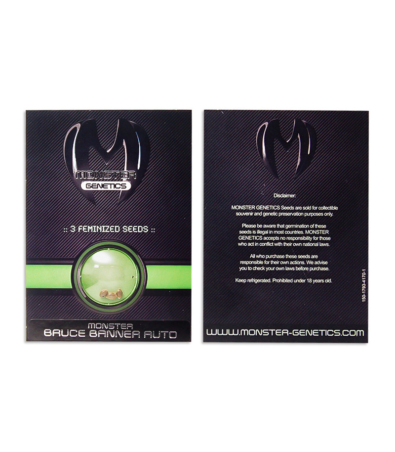 Сорт конопли Monster Bruce Banner Auto можно сравнить с настоящим канна-шедевром под авторством молодого и уже громко заявившего о себе испанского сидбанка Monster Genetics. Автик объединяет в себе 60% Сативы, 40% Индики, лучшие черты автоцвета, высокую урожайность и убойные 25% ТГК.