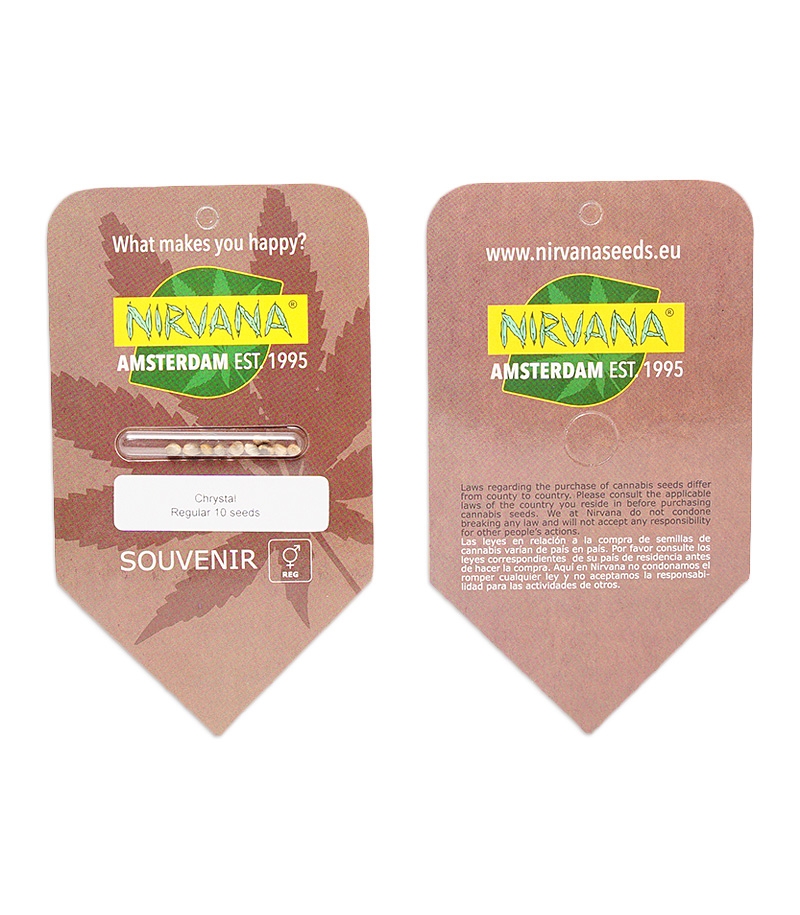 Семена конопли Chrystal regular от Nirvana. У гибрида огромные липкие соцветия, хорошая урожайность и керосиновый запах. Действует как легкий афродизиак.