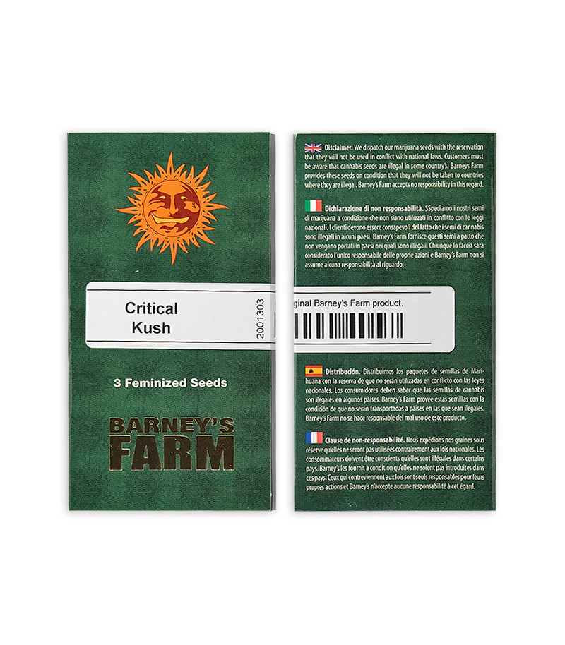 Critical Kush («Опасный Kush») – феминизированная индика-доминантная версия популярного сорта марихуаны от сидбанка Barney’s Farm. Сорт отличается неприхотливостью, интенсивным запахом и нежным послевкусием. На конкурсе Cannabis Cub сорт Critical Kush занял первое место.