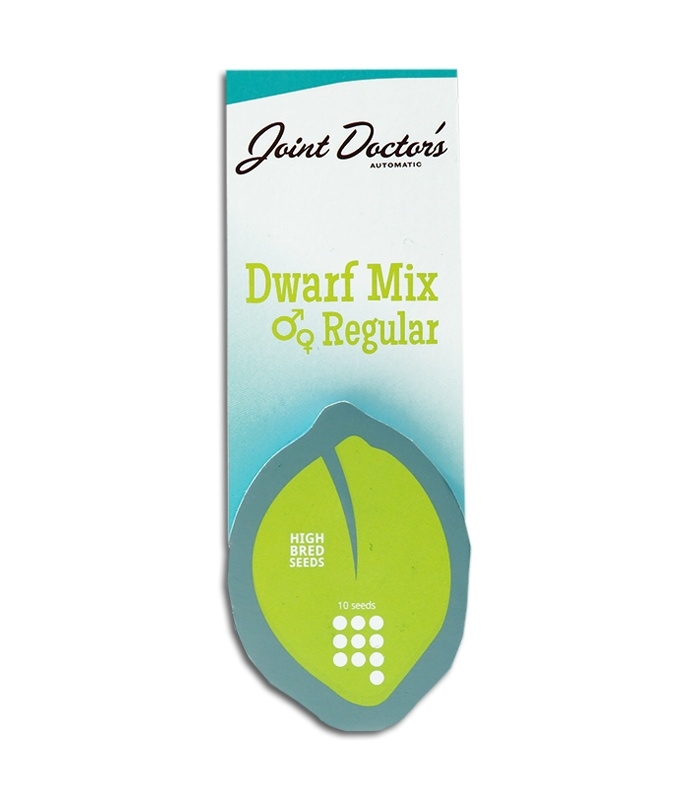Dwarf Mix – в микс входят 5 или 10 регулярных семян, от канадского сид банка Joint Doctor. Это автоцветущие семена, цикл цветения которых составляет в среднем 8-9 недель. Растения неприхотливы, устойчивы к заболеваниям, обладают небольшими размерами, благодаря чему удобно культивируются в помещении.