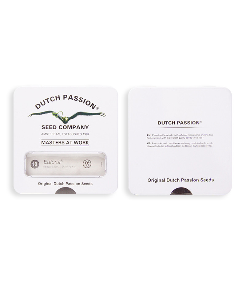 Регулярный сорт Euforia появился во время участия бридеров Dutch Passion в сканковой программе. В 1996 году было выведено около 10 сортов с генетикой Skunk. Среди них и стабильное растение Euforia reg, способное снимать стресс и успокаивать нервы.
