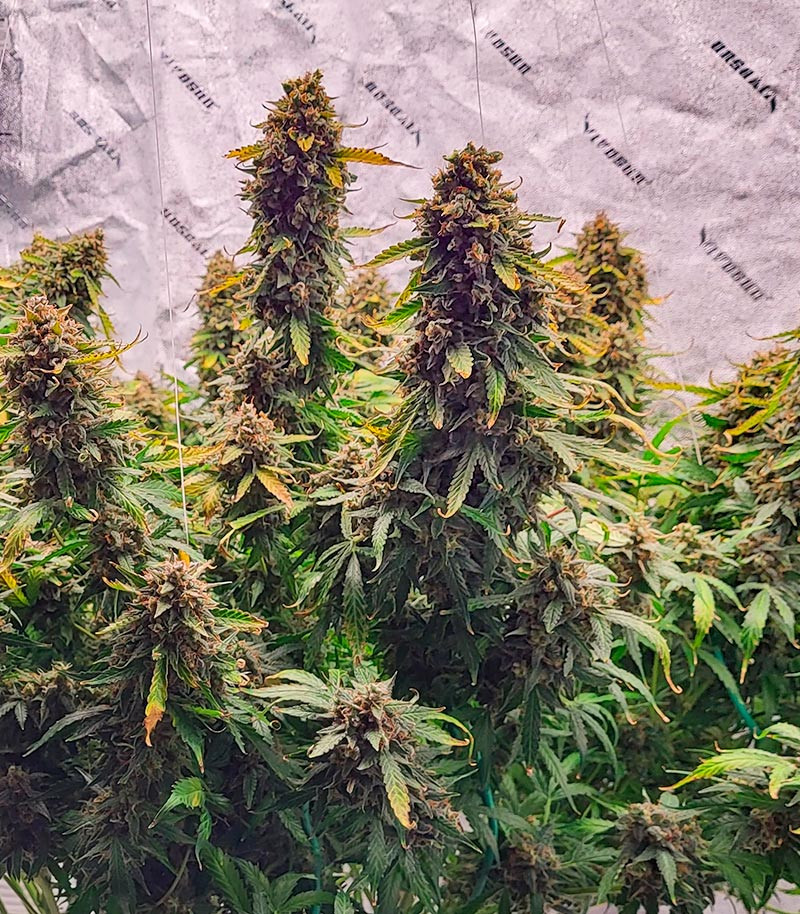 В процессе развития из семян вырастают небольшие кусты с укороченными междоузлиями и твердыми как камень соцветиями. Средняя высота растений составляет 110-140 см. Полный цикл от посадки до харвеста длится 60-70 дней, а урожайность при наличии оптимальных условий достигает 500-550 г/м² или 300-350 г/куст.