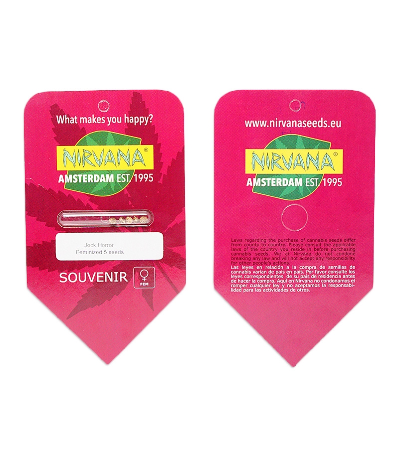 Семена конопли Jock Horror fem от Nirvana. Сативный гибрид, производит невероятное количество смолы. Уникальный по вкусу и аромату. Вызывает прилив эйфории.