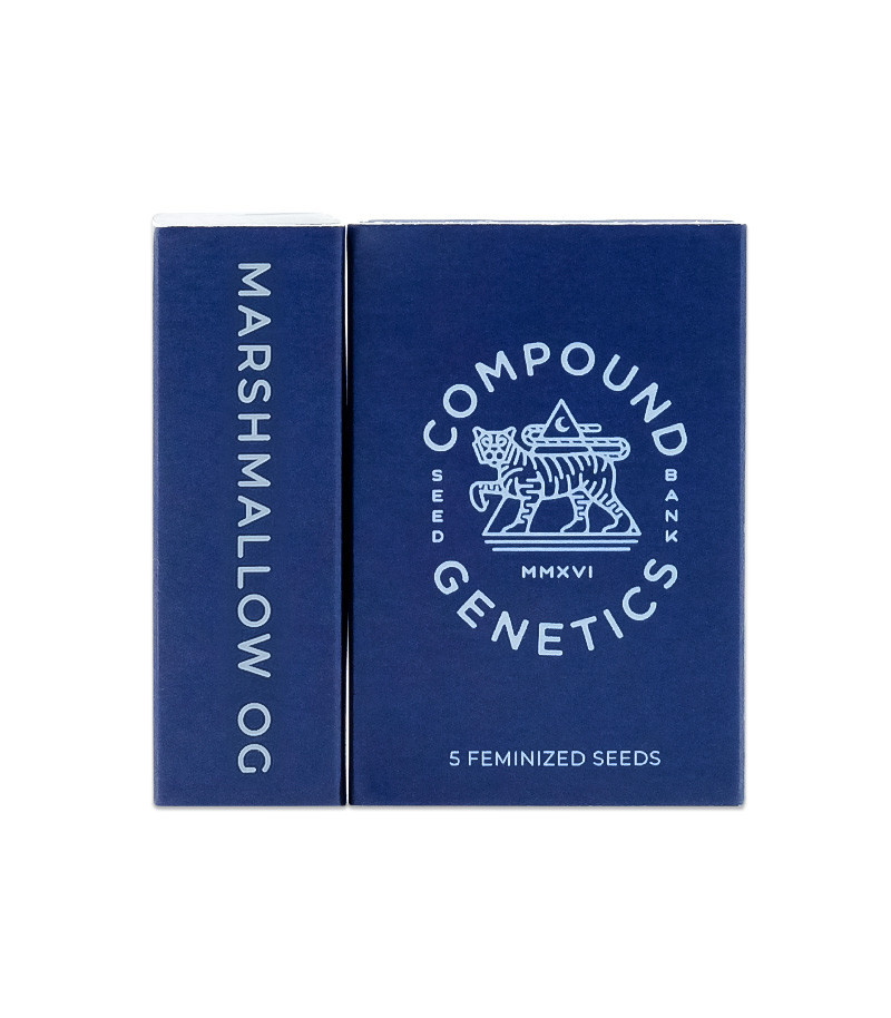 Один из последних шедевров компании – терпеновая бомба Marshmallow OG. Его удивительный кондитерский аромат, похожий на запах кусочка свежайшего яблочного зефира, присыпанного сахарной пудрой, способен свести с ума любого сладкоежку. Чтобы достигнуть такого совершенства, селекционеры решили сплавить воедино сразу три хита американского рынка. Материнским растением в этом комбо стал флагманский сорт Compound Genetics – Jet Fuel Gelato, а в качестве второго компонента был выбран кросс ChemD и Triangle Kush, который является кульминацией слияния двух самых мощных седативных сортов на рынке.