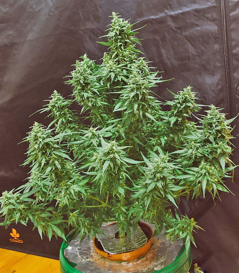 Семена конопли Ogre демонстрируют потрясающие темпы роста. Всего за несколько недель они превращаются в крепкие ветвистые растения, максимальный рост которых может превышать 1 метр. Растишка начинает стремительно разрастаться вширь при переходе в фазу цветения, увеличивая свой объем в 3-5 раз. Ближе к харвесту ветви полностью обрастают большими плотными смолистыми соцветиями. Иногда им даже требуется дополнительная подпорка.