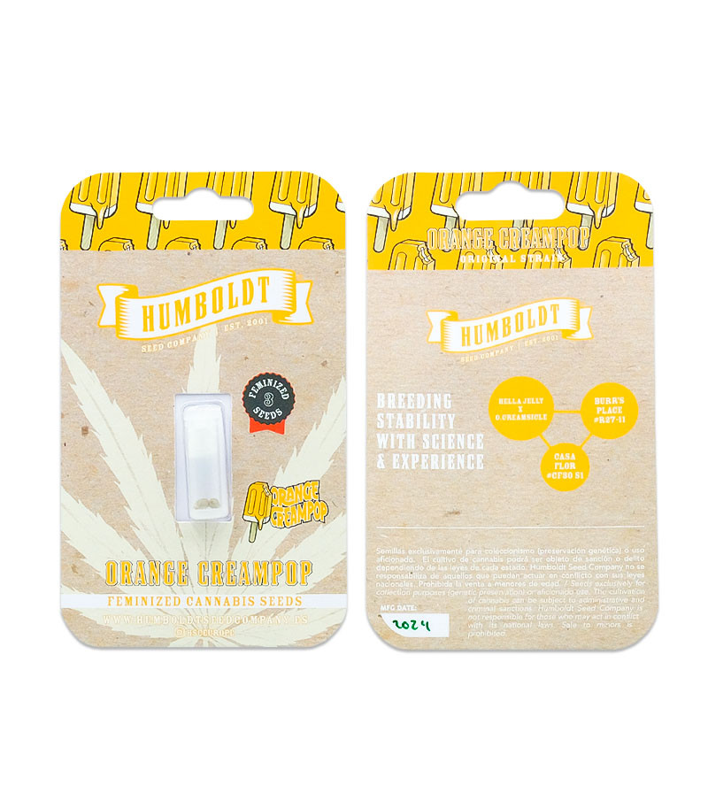 Американская семенная компания Humboldt Seed Company прославилась на весь мир благодаря неординарному подходу в области селекции. Используя специфические методы скрещивания и богатейшую библиотеку сортов, собранных в родной Калифорнии, им удается создавать действительно уникальные растения. Хедлайнер сидбанка Blueberry Muffin стал настоящим хитом рынка за счет потрясающего аромата, который, по мнению пользователей Leafly, один в один соответствует его названию. Аналогичная ситуация сложилась и с новинкой HSC, сортом Orange Creampop. Это растение выделяет сумасшедшее количество смолы, которая заставляет соцветия благоухать, словно подтаявшее апельсиновое мороженое в жаркий летний день.