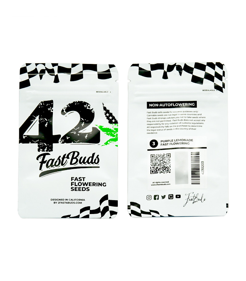 Сорт конопли Purple Lemonade FF – это быстрорастущий фотопериодный гибрид из новой коллекции FastBuds. Его соцветия созревают всего за 7 недель, приобретая фиолетовый окрас и наполняясь 25 % ТГК. Их вкусовые качества представляют собой лимонадную свежесть, а эффект – это яркий воодушевляющий high.