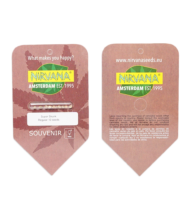 Семена конопли Super Skunk reg от Nirvana. Высокоурожайный сорт с выразительным сканковым запахом и сладким вкусом. Содержит 18% ТГК, эффект комплексный.
