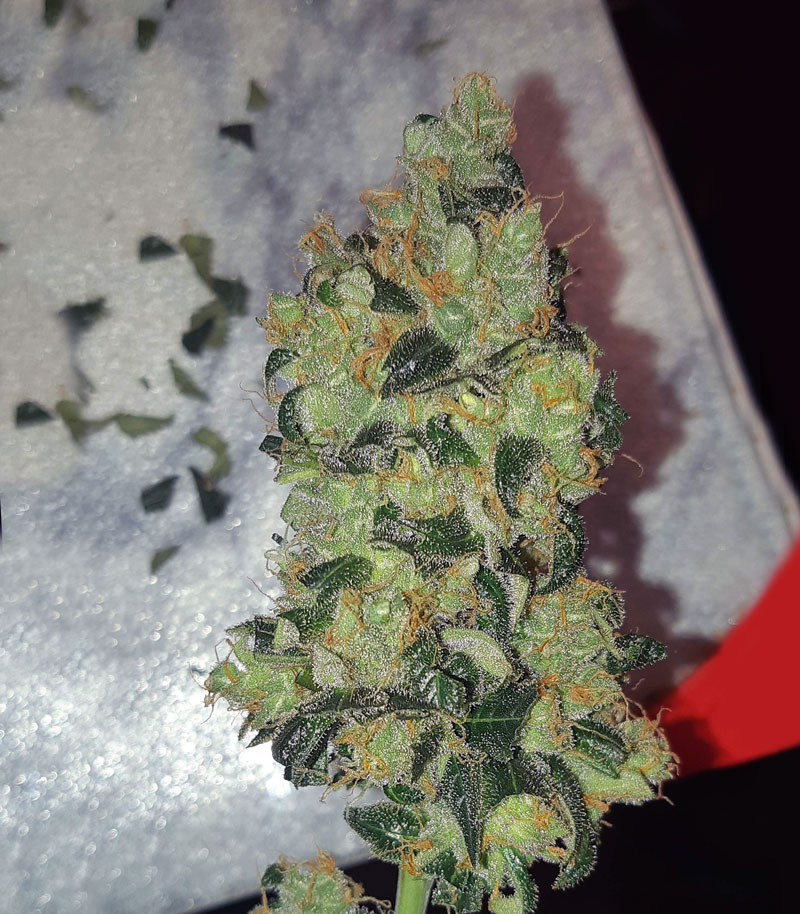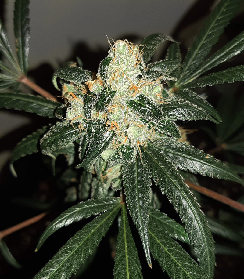 Цветение характеризуется огромным количеством трихом. Из-за этого кажется, что растение покрыто коркой инея. Также все вокруг наполняется концентрированным ароматом ванили и фруктов. При выращивании в индоре фильтр понадобится обязательно.