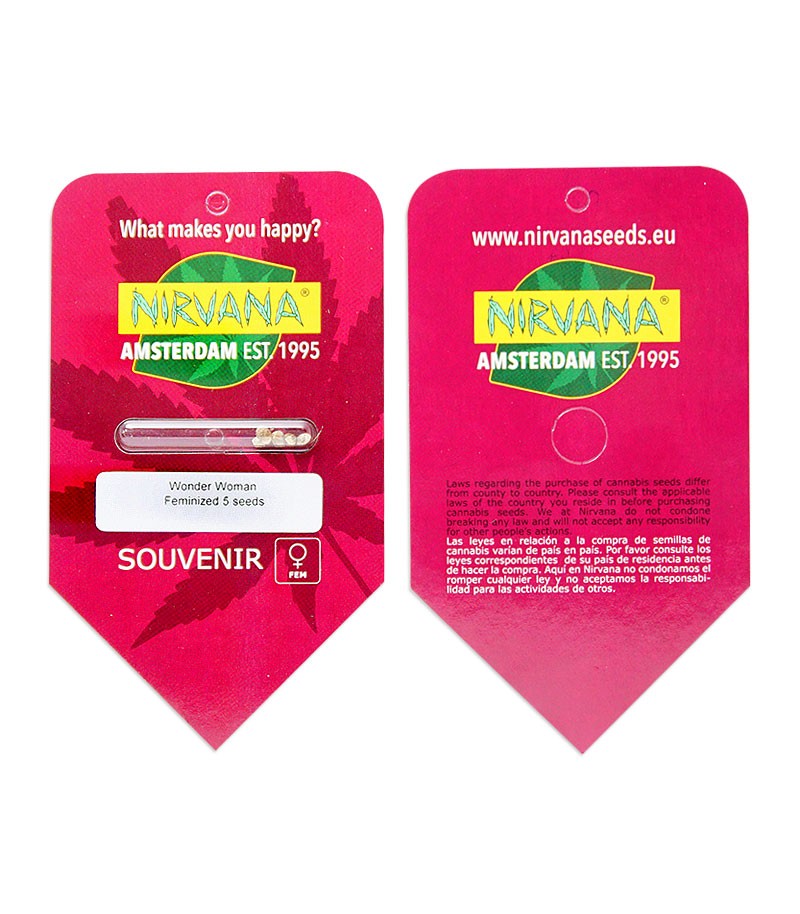 Семена конопли Wonder Woman fem от Nirvana. Урожайная модификация сорта Skunk, за 3 месяца приносит до 550 г/м². Эффект долгий и мощный, бодрит и дарит радость.