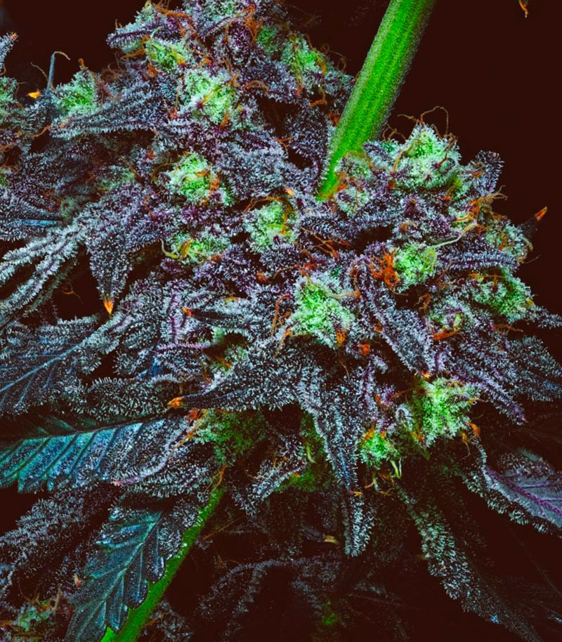 Внешний вид у взрослых растений Wrank R2 невероятно притягательный. Уже с первых недель цветения кустики начинают постепенно напитываться темными фиолетово-синими тонами, а к моменту полного созревания на 60-70-й день они обретают брутальный черный окрас с ярким кристаллическим блеском. Если у вас и получится оторвать взгляд от такой чарующей картины, то только для того, чтобы быстрее закрыть дверцу бокса и не дать вязкому насыщенному запаху каннабиса расползтись по всей округе. Для нейтрализации аромата столь душистых кустиков никакие нейтрализаторы запаха или народные методы маскировки нежелательного благоухания точно не сработают. Единственный вариант скрыть посадку от окружающих – использовать угольный фильтр или высаживать растения в диком глухом аутдоре, где случайных прохожих попросту нет.