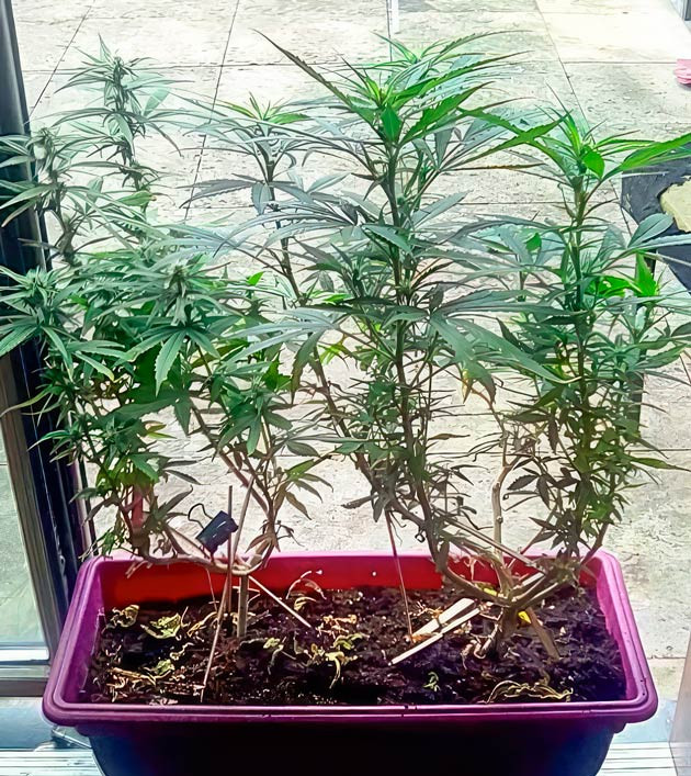 Мой метод похож чем-то на LST. Я тоже развожу ветки в стороны от центра куста, но не креплю их растяжками к основанию горшка или к земле. Я устанавливаю между ветвями распорки и раздвигаю их в стороны таким образом. Для этого я использую плоские палочки, типа тех, что вставляют в мороженое. Куст растет, и я увеличиваю их длину. Начинаю с трех сантиметров, а дальше пять, семь и так далее. Таким образом, я могу открыть середину куста для света и обеспечить циркуляцию воздуха внутри кроны.